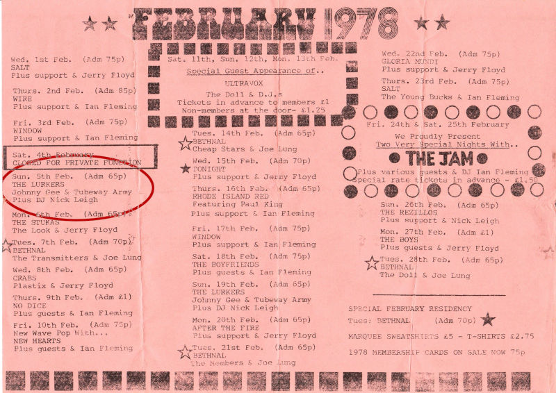 1978 Sunday   London The Marquee Club, England